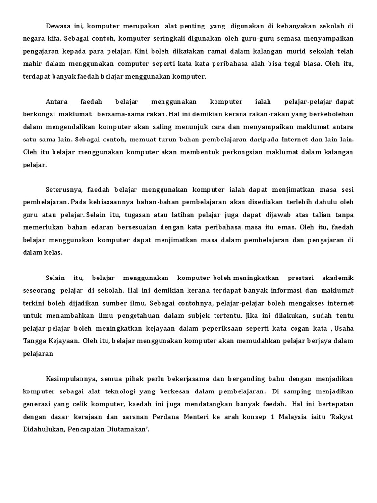 Anda boleh menggunakan contoh karangan di bawah sebagai panduan untuk membantu dalam penulisan karangan Bahasa Melayu. - Sanggup untuk belajar. Dengan menggunakan sistem komputer maka lembaga pendidikan dapat lebih mudah dan aman untuk mengelola data administrasi meliputi data siswa data guru maupun data sekolah itu sendiri.